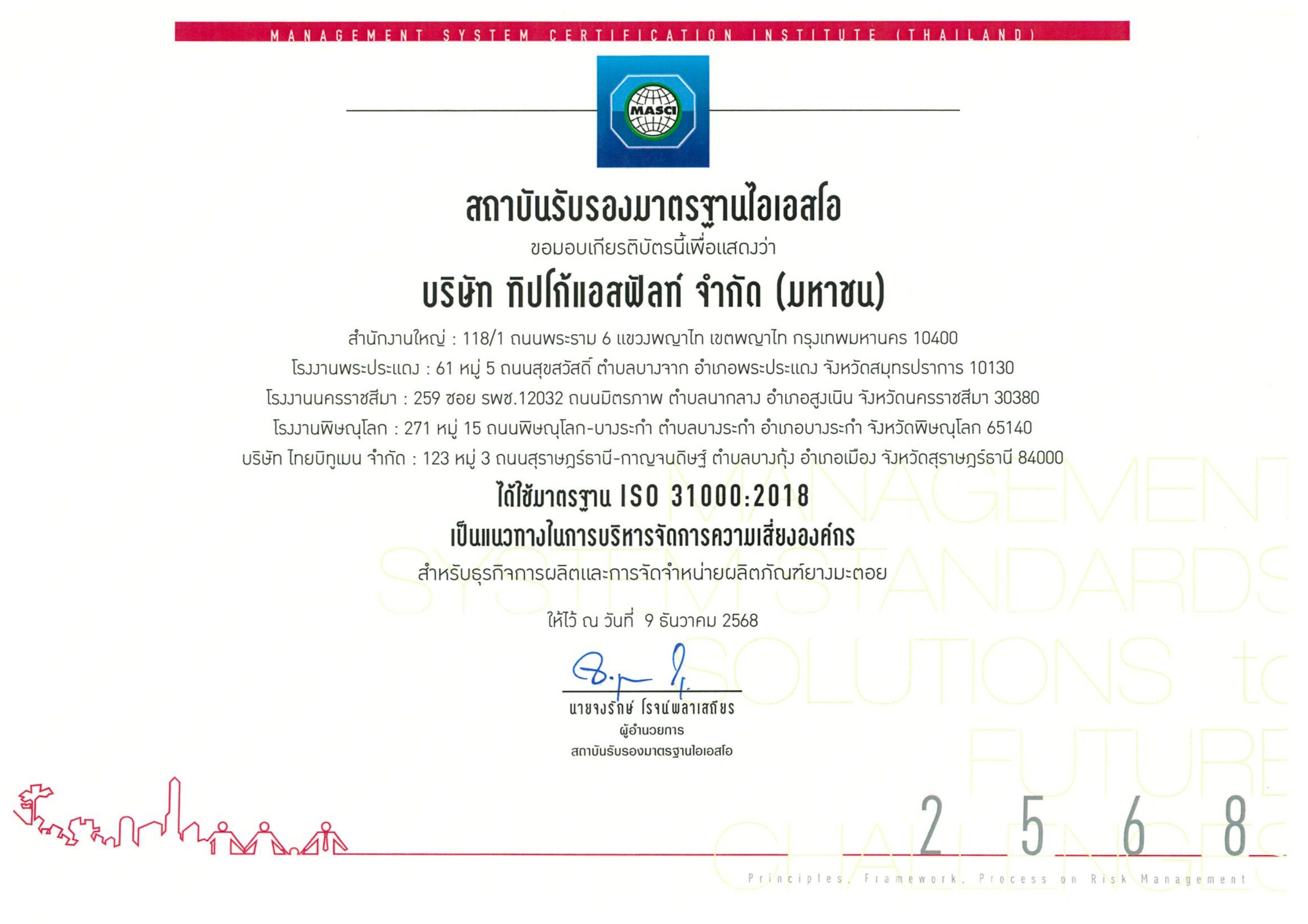 เกียรติบัตรการทวนสอบมาตรฐาน ISO 31000:2018