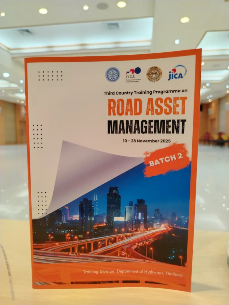 The Department of Highways (DOH), in collaboration with the Japan International Cooperation Agency (JICA) and the Thailand International Cooperation Agency (TICA) under the Ministry of Foreign Affairs, organized the “Highway Asset Management, Batch 2” from November 10 to 28, 2025. The training sessions were held at the Terdsak Sedthamanop Seminar Room, 3rd Floor of the Training Division Building, Department of Highways.